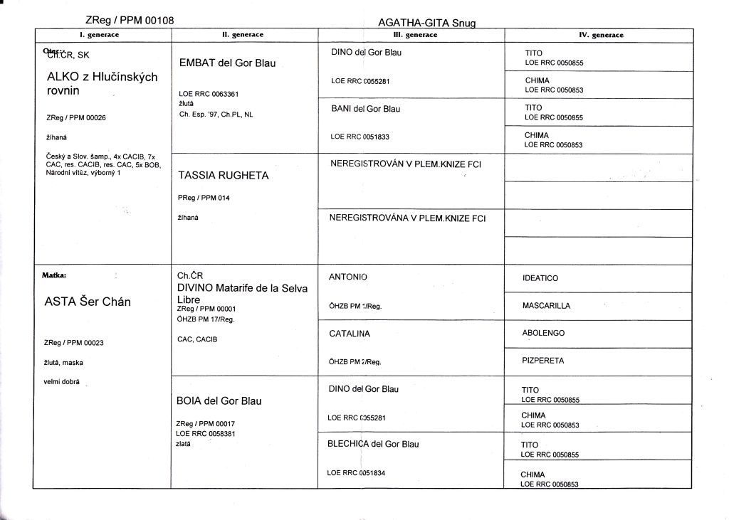 Rodokmeny / Pedigrees